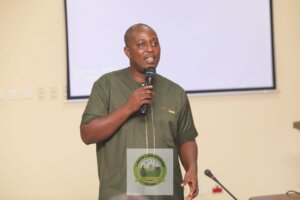 The Acting Regional Lands Officer for Greater Accra, Surv. Timothy Anyidoho Esq. spoke on accountability and teamwork. He emphasized the shared responsibility of staff in managing state lands and adhering to established protocols.